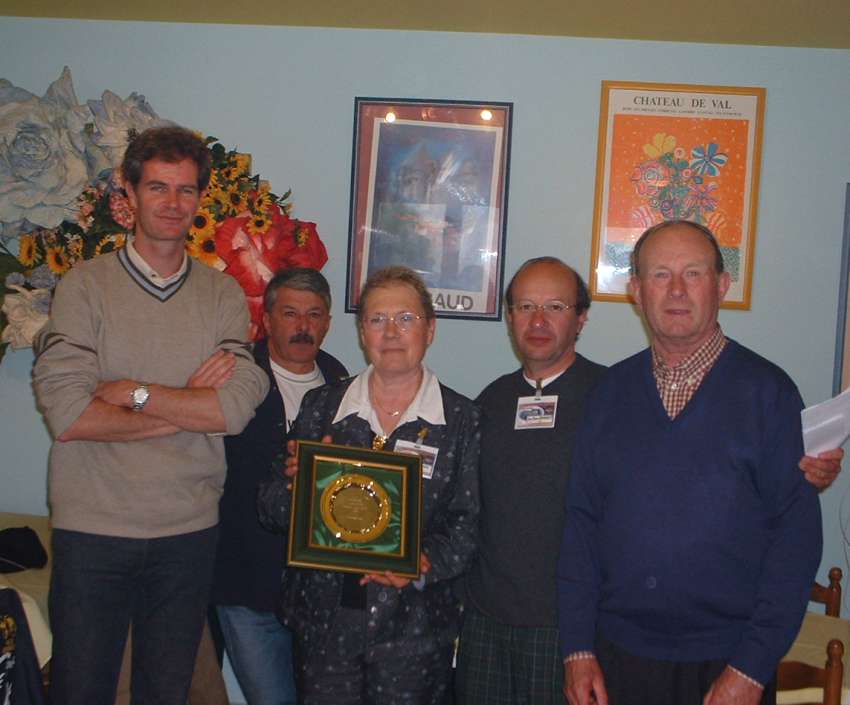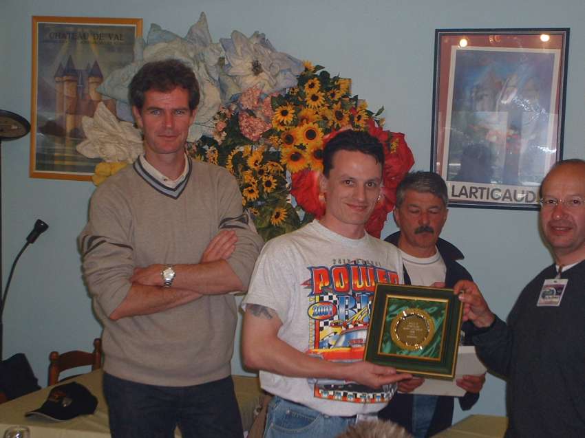 dans le brouillard. Vite au chaud dans le restaurant .. A la fin du repas, le classement final est annoncé et c'est Jean Auvray qui termine 1°, suivi par Ian Rubrey et Tony Vickers. Quant à moi je suis ... dernier ! Tous les participants se voient remettre des cadeaux offerts par CHRYSLER FRANCE et ses représentants Peggy Allary et Daniel Barrière. Merci encore ! Il est déjà 15h30 et il faut songer au retour: plein nord pour les uns, plein sud pour les autres. Et c'est reparti pour 550 km, sans problème (sauf les essuie-glaces qui maintenant ne fonctionnent vraiment plus, j'achèterai du "Rain X" à Brive). Pau, 23h30 dimanche 26 Mai: fin du Chrysler Anciennes # 2 après 1570 km et 300 litres de "gazoline" .. Vivement l'année prochaine (les 7/8/9 juin à Nevers-MagnyCours pour le weekend de Pentecôte) !