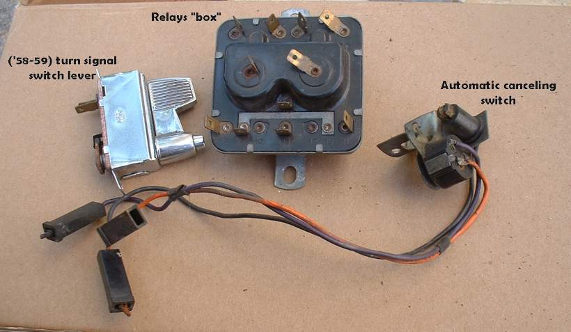 1/ How works the turn signal lever ? (note that the pics are '58-59 switch but the electrical functions are the same on '57). Click on thumbnails to enlarge 2/ How works the automatic canceling switch on the steering column ?