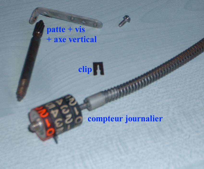 Le clip maintenant l'axe du compteur journalier. Enlever l'ensemble (photo